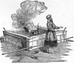 Alter’s note: “The person who slaughters an animal without having the priest cast some of its blood on the legitimate alter of YHWH is considered to have committed murder … a ritual recognition that the taking of life, even for consumption as food, is a grave act that must be balanced by an act of expiation” (617).